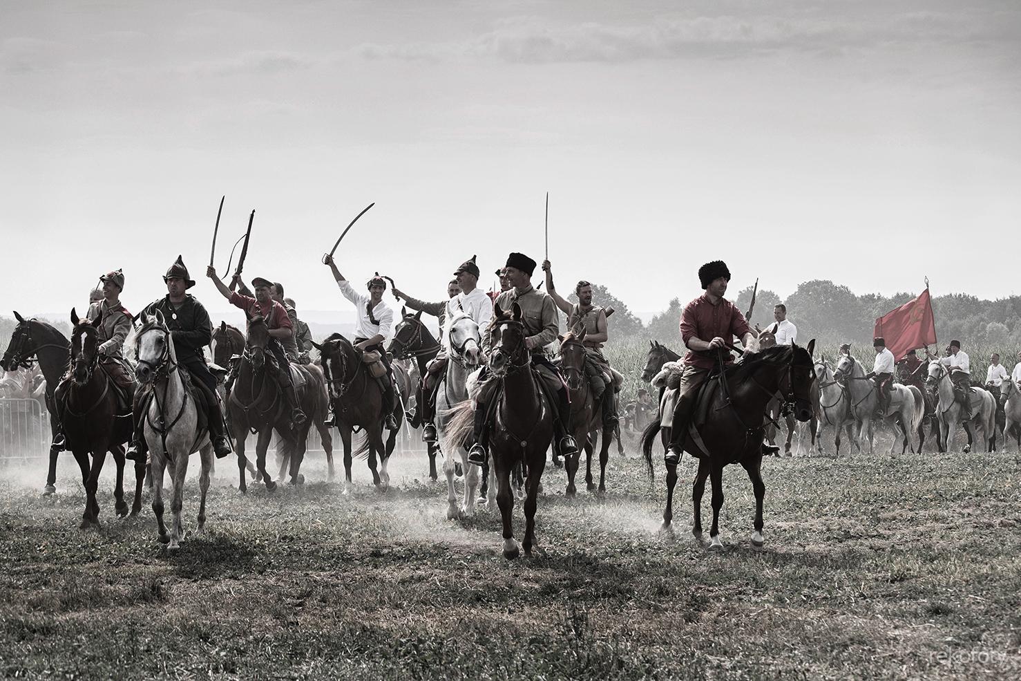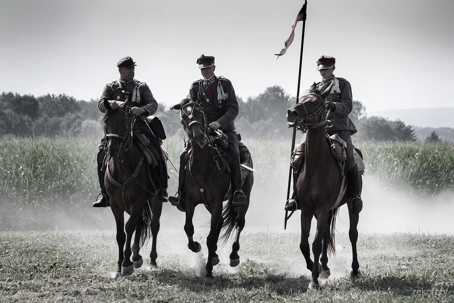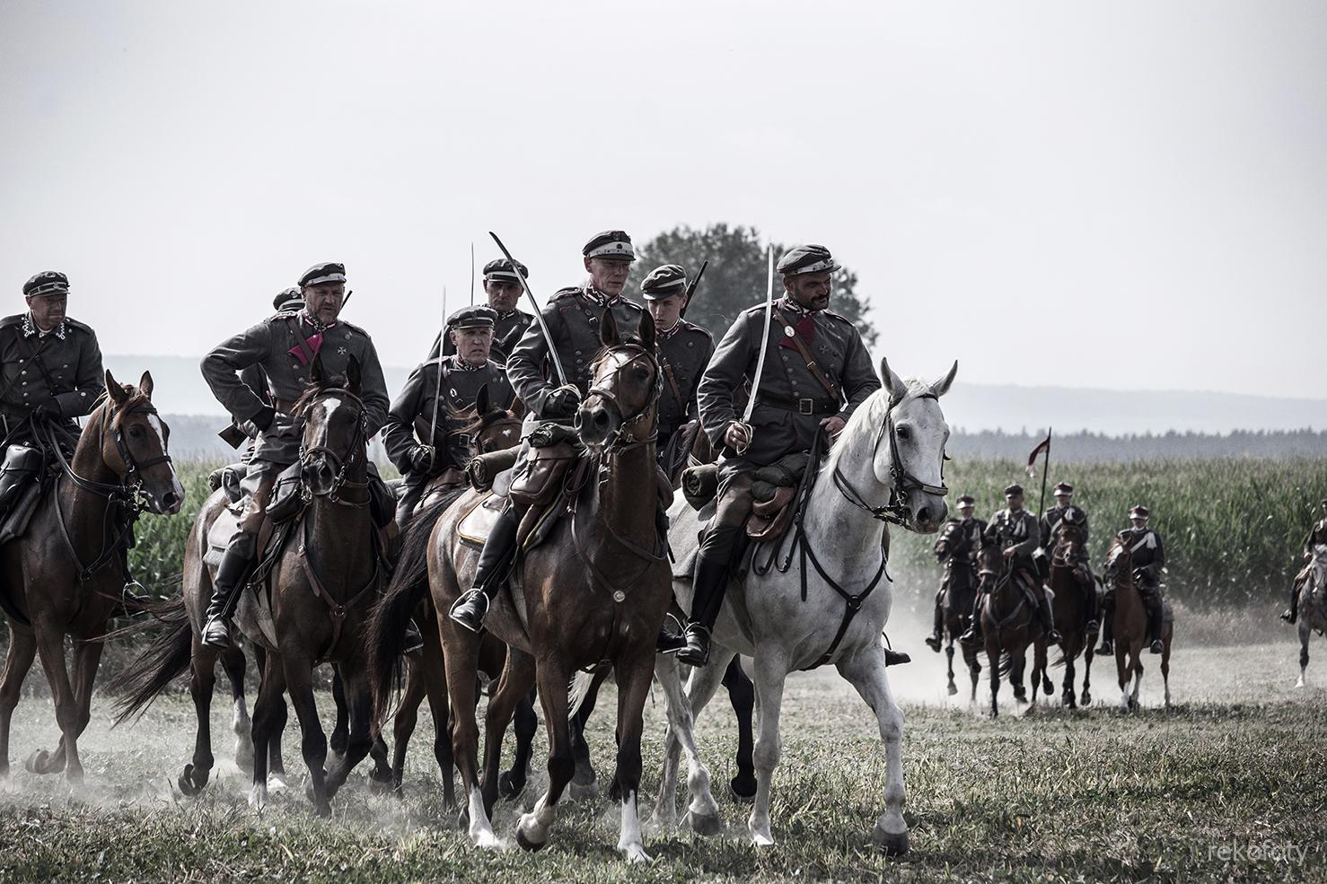 Po około godzinie na polach rozpoczęła się inscenizacja. Każdy z nas zajął upatrzoną przez siebie pozycję, wybierając najlepsze miejsce w swoim mniemaniu. Ha, ha. Taka już jest niepokorna natura fotografa, co jest piękne – dzięki temu z tej samej imprezy powstają różne ujęcia i odmienne spojrzenia na temat. Inscenizacja zrobiła na mnie ogromne wrażenie. Ostatni raz byłam tak podekscytowana podczas szarży husarii pod zamkiem w Gniewie. Ułani i ich konie prezentowali się wspaniale, tworząc niemal jeden zsynchronizowany organizm. Idealna synchronizacja i harmonijne zespolenie człowieka ze zwierzęciem. Mam nadzieję, że udało mi się choć w części uchwycić to zjawisko na moich zdjęciach. Również ekipa odtwarzająca rosyjską armię konną Siemiona Budionnego wykonała znakomitą pracę.